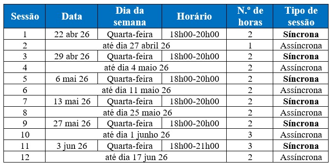 Oficina de formação em regime b-learning de 42h (21h presenciais e síncronas + 21h de trabalho aotónomo)